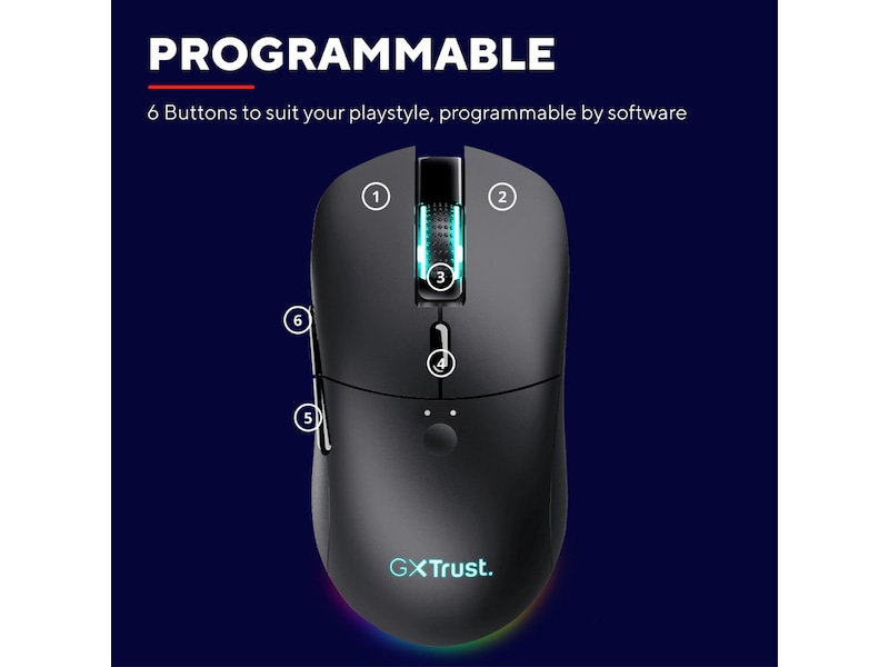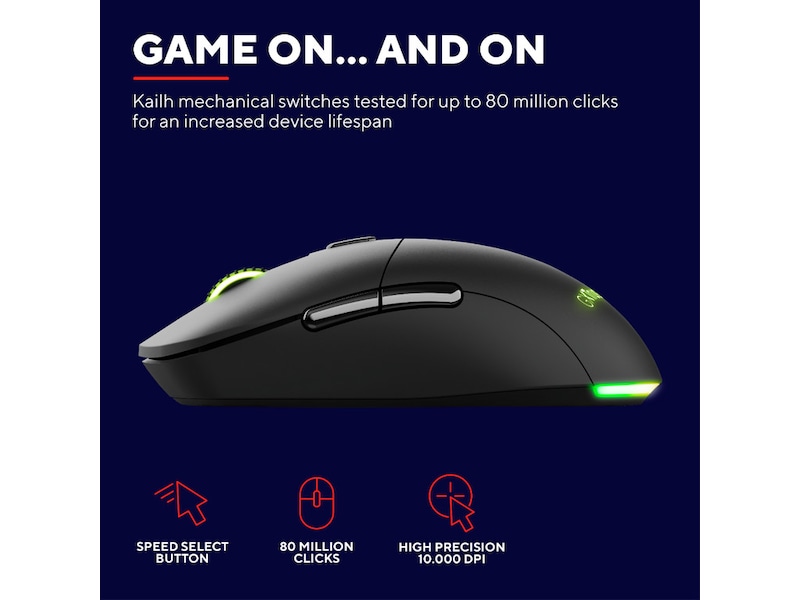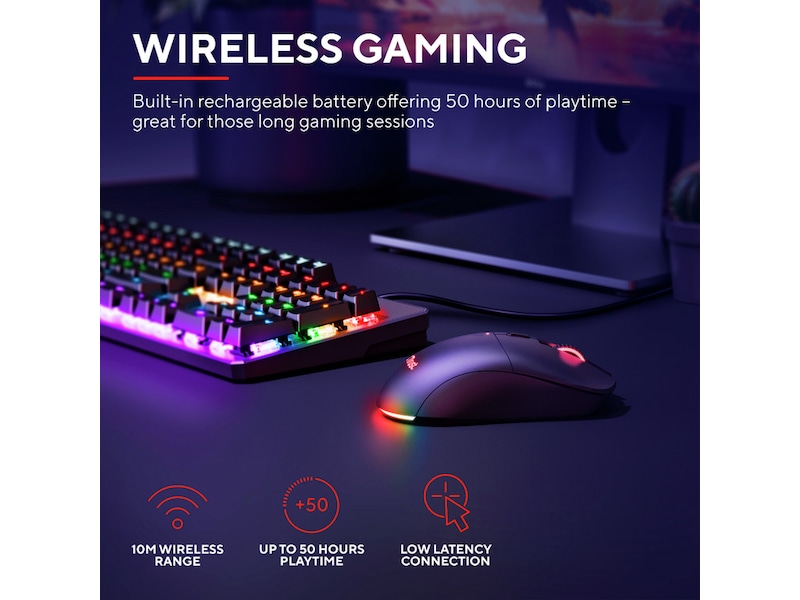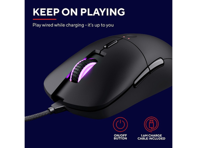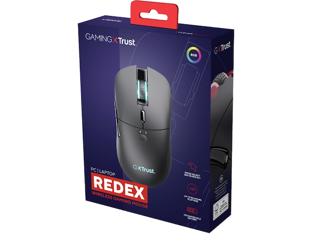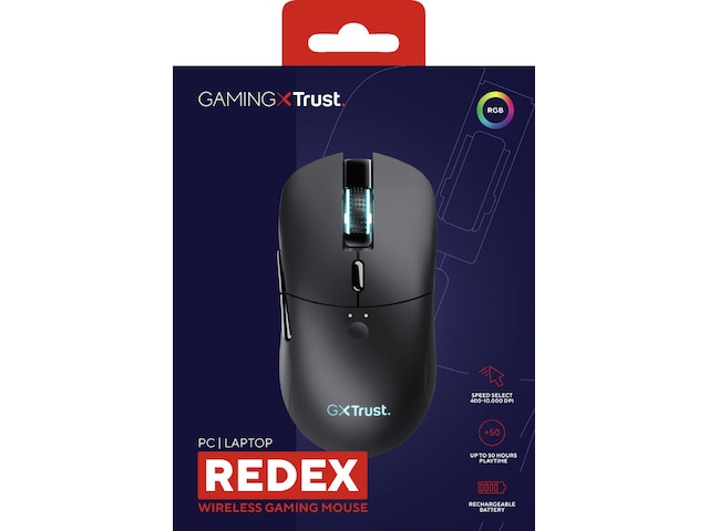 Trust Redex er en oppladbar mus med opptil 50 timer batteritid. Her kan du spille lange økter i dagesvis. Pålitelige Kalih mekaniske knapper som er testet til 80 millioner klikk