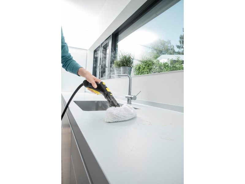 Kärcher SC 3 er en allsidig dampvasker som rengjør uten kjemikalier! Rengjør alle typer harde overflater og dreper 99,99 % av husholdningsbakterier.
