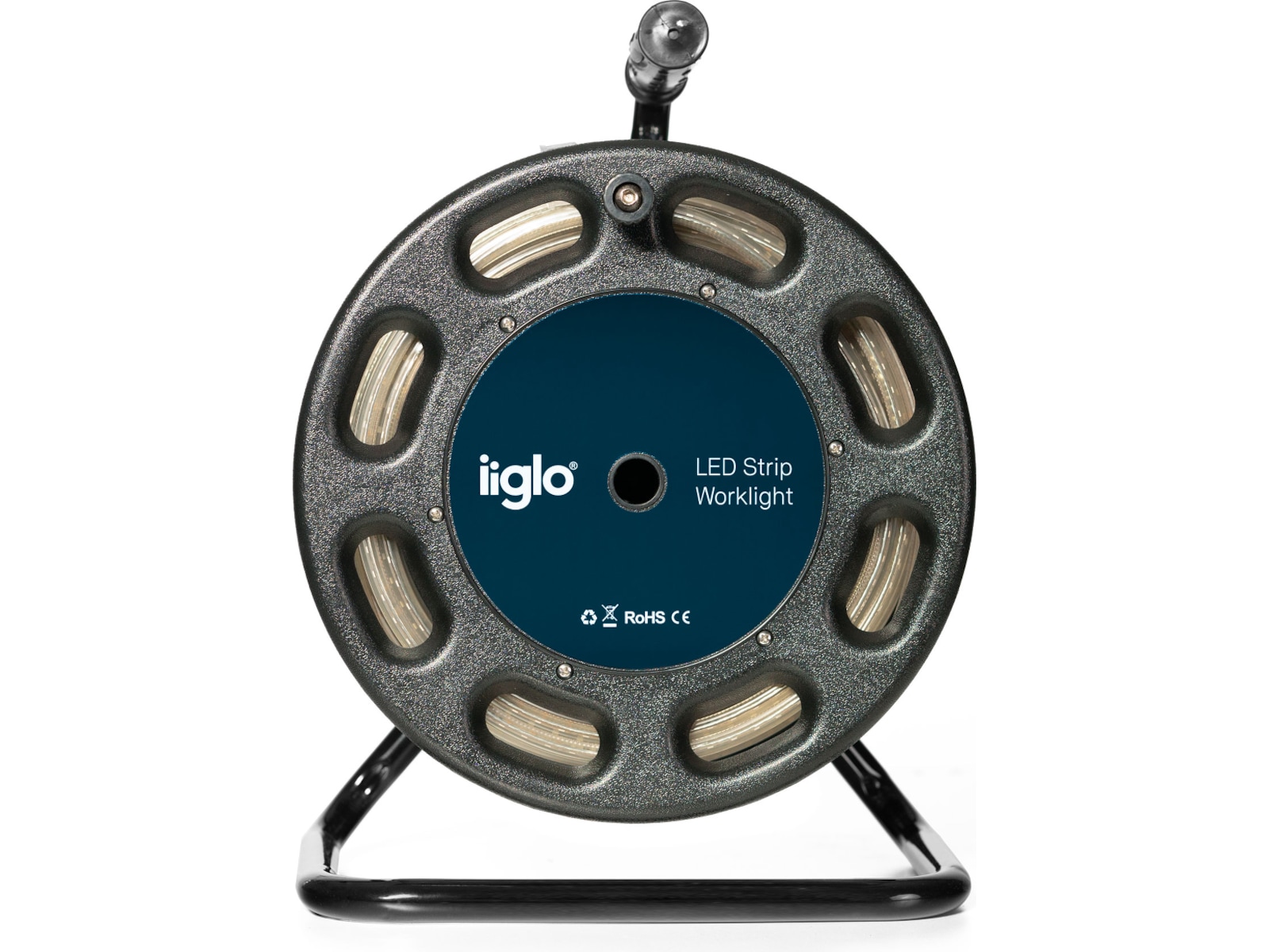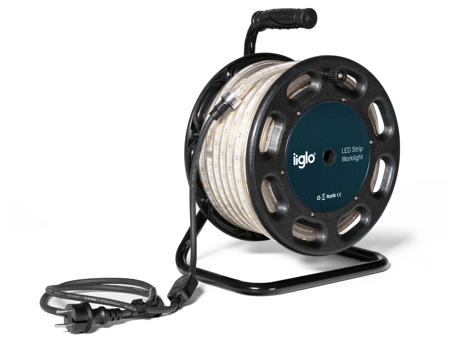 Dette LED arbeidslyset fra iiglo har en 25 meter lang trommel med 180 LED per meter. Arbeidslyset passer perfekt for deg som trenger god belysning, uansett om det er innendørs i garasjen eller kjelleren, eller på ute- eller byggeplassen.