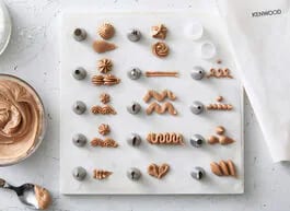 Pipesettet med gjenbrukbar sprøytepose og 14 dysefinisher å velge mellom, hjelper deg med å finpusse dekoreringsferdighetene dine for den nøyaktige finishen.