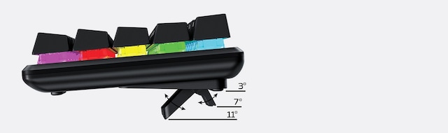 • Tre justerbare tastaturvinkler og en avtagbar USB-C kabel