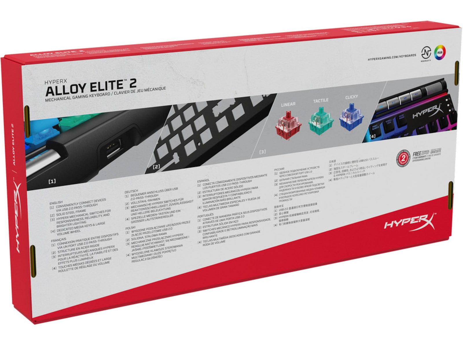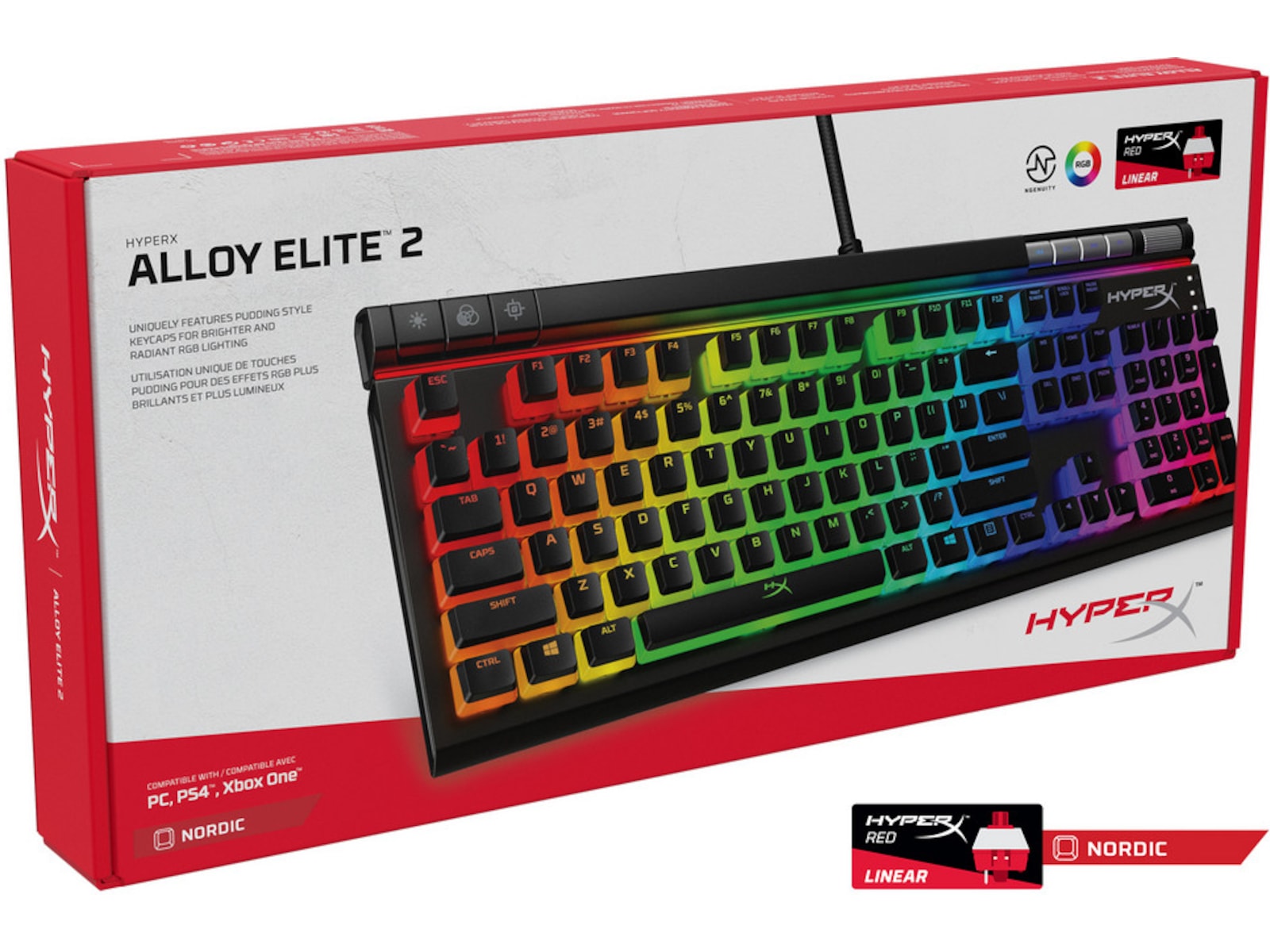 HyperX Alloy Elite 2 er tastaturet for gamere, streamere og alle som liker å gjøre flere ting på en gang og som trenger mer kontroll ved fingertuppene. Dette fullt utstyrte spilltastaturet, som har spesielle mediataster og et stort volumhjul, er klart til alt fra videoredigering til avspilling av film. Den er bygd med ultrapålitelige mekaniske HyperX-brytere balansert for hastighet og respons, slik at du kan stole på dine hovedinputs. Bryternes blottlagte LED-lys kobles sammen med de halvgjennomsiktige HyperX Pudding Keycaps for å gi RGB-belysningen ekstra lysstyrke sammenlignet med ensfargede tastaturer.