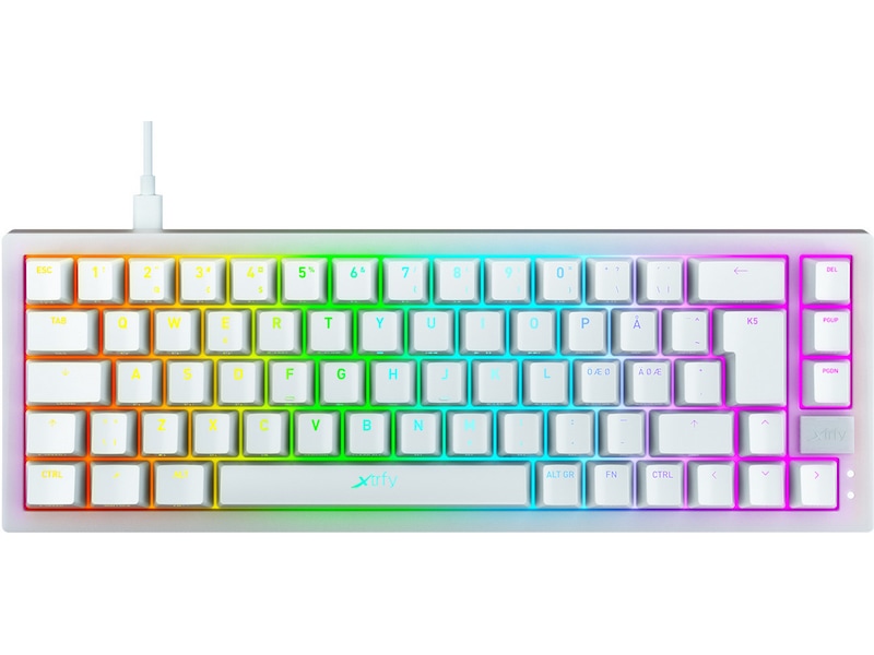Liten betyr ikke mindre. Dette tastaturet er ekstremt kompakt, men likevel fullt utstyrt, med RGB-belysning som kan tilpasses per tast, makroer, mediekontroller og mer. Alle innstillinger utføres med tastene. Ingen programvare er nødvendig.