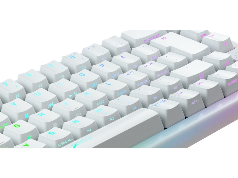 Dette tastaturet leveres i et 65 %-format – gir deg en ekstremt kompakt design uten å ofre bekvemmeligheten til piltastene.