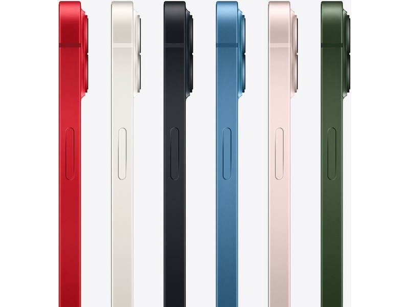 iPhone 13. Tidenes mest avanserte doble kamerasystem på en iPhone. Lynende rask A15 Bionic-chip. Et stort byks i batteritid. Slitesterk utforming. Superrask 5G. ¹ Og en lyssterk Super Retina XDR-skjerm.