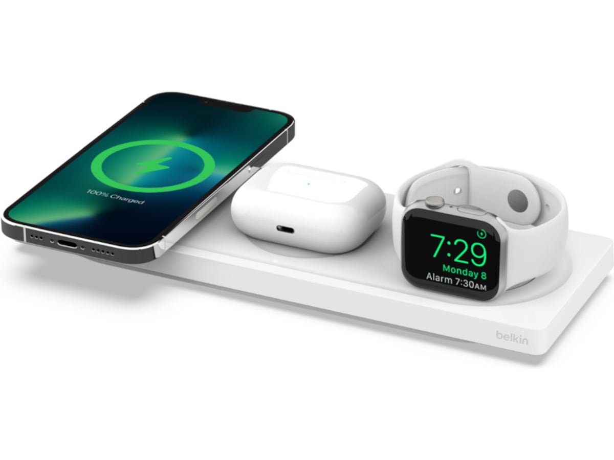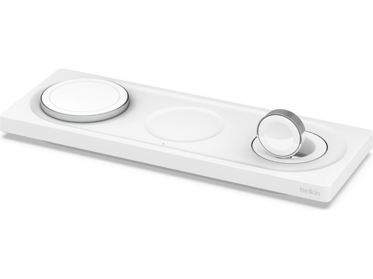 Elegant og kraftig lader for telefon og tilbehør. Har Magsafe-støtte for iPhone, slik at telefonen automatisk retter seg inn til best mulig plassering. Har også en smart LED-indikator som indikerer at dine AirPods er plassert korrekt på laderen. Muliggjør lading av Apple Watch både i liggende og stående stilling. Støtte for hurtiglading av Apple Watch Series 7, hvilket gir hele 33 % raskere lading. Uteffekt på opptil 15 W.