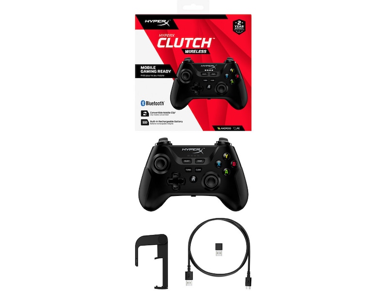 Få bedre kontroll over mobilspillingen din med HyperX Clutch trådløse spillkontroll. Med sitt komfortable grep, retningspute, knapper og analoge spaker, vil denne kontrollen sette gleden tilbake i din mobile spillopplevelse. Mobilklemmen kan romme telefoner fra 41 mm – 86 mm (~1,6 – 3,3 tommer) i bredden. Den kobles også trådløst til andre enheter som nettbrett og PC-er, noe som gjør den til en allsidig enhet for spilleren som spiller på mange systemer. Med opptil 19 timers batterilevetid* får du mye spilleglede før du må lade batteriet på 600 mAh.
