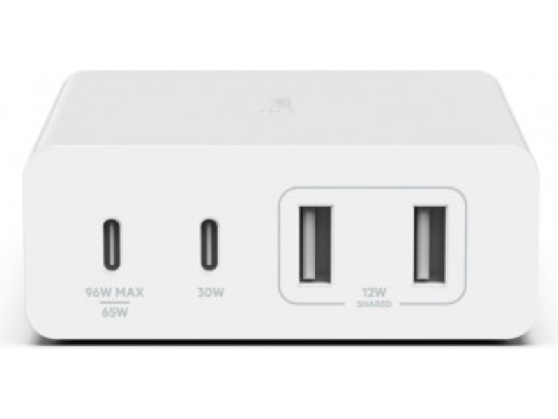 - Gir maks. 108 W total ladekraft når én enkelt USB-C (96 W) og delte USB-A-porter (12 W) er i bruk. Intelligent strømdeling gjenkjenner strømbehov og distribuerer forsyning til opptil 4 tilkoblede enheter.