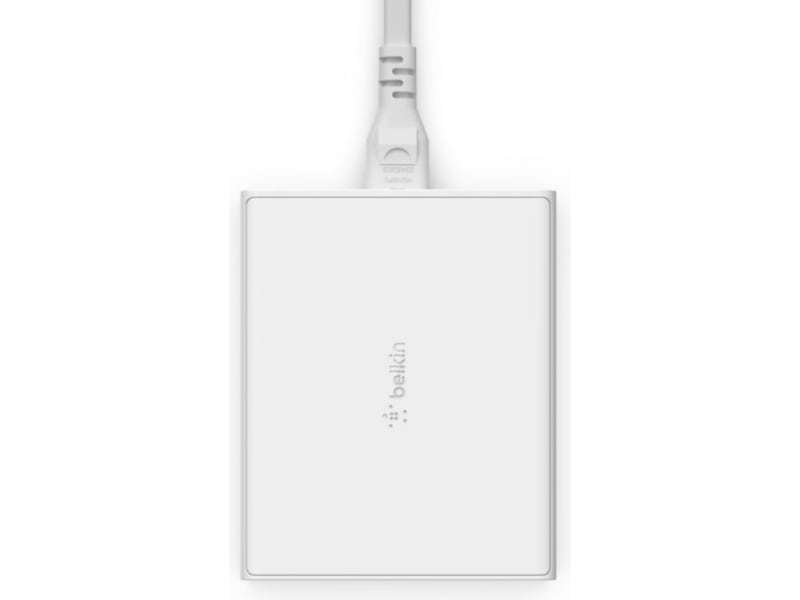 Lad MacBook Pro med full hastighet med Belkins 4-ports USB-C® GaN-lader 108 W*. Med 2x USB-C og 2x USB-Aporter kan du enkelt og praktisk lade din bærbare datamaskin, iPad, iPhone og Apple Watch. Støtter også et bredt spekter av enheter fra Samsung og Google, PC-er og andre kompatible bærbare datamaskiner og enheter med USB-C. Med GaN-teknologi for å levere høyere watt med økt ladeeffektivitet. Designet utstående fra veggen gir deg bekvemmeligheten og komforten ved å ha tilgang til flere ladeporter rett på skrivebordet.