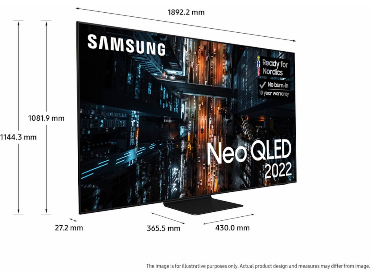 * Når du kjøper en 2022 QLED, Neo QLED eller Neo QLED 8K tilbyr vi 10-års garanti mot skjerminnbrenning. Garantien er gyldig i 10 år fra kjøpsdatoen. For at garantien skal gjelde, kreves en kopi av kjøpskvittering samt registrering på Samsung sin hjemmeside innen 90 dager etter kjøp. Gyldig 1.4.2022 – 31.8.2023.