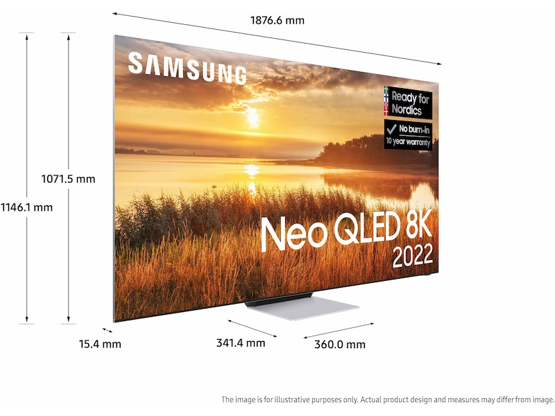 * Når du kjøper en 2022 QLED, Neo QLED eller Neo QLED 8K tilbyr vi 10-års garanti mot skjerminnbrenning. Garantien er gyldig i 10 år fra kjøpsdatoen. For at garantien skal gjelde, kreves en kopi av kjøpskvittering samt registrering på Samsung sin hjemmeside innen 90 dager etter kjøp. Gyldig 1.4.2022 – 31.8.2023.
