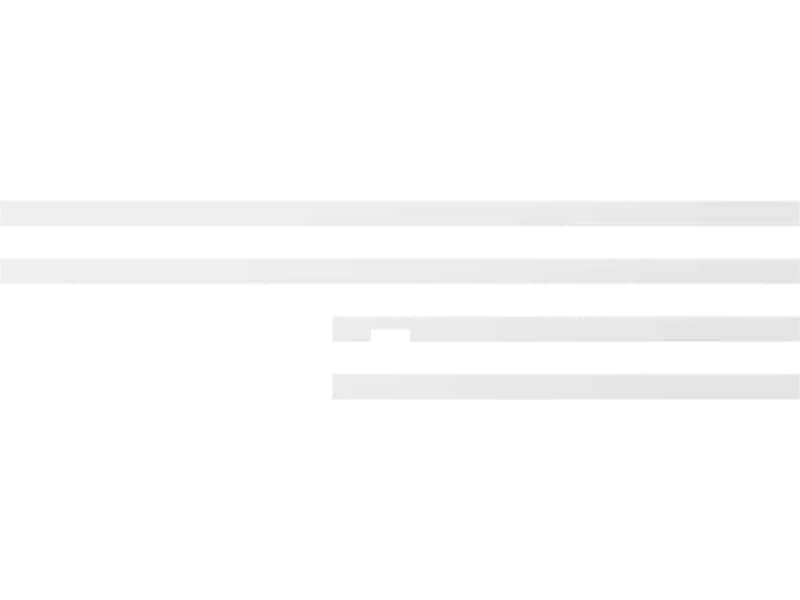 Topp og bunnbøyler (728 x 22.5 x 16.1 mm), Venstre og høyre bøyler (425 x 22.5 x 16.1 mm)