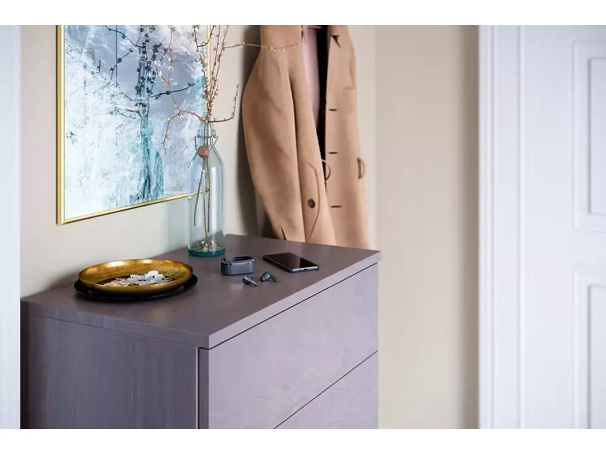 Uansett hva dagen bringer, kan disse hodetelefonene holde tritt. Du får 8 timers avspillingstid (7 timer med ANC) fra et par fulladede ørepropper, og en fulladet enhet gir deg 24 timer til (21 timer med ANC). Det Qi-kompatible etuiet kan lades trådløst eller via USB-C.