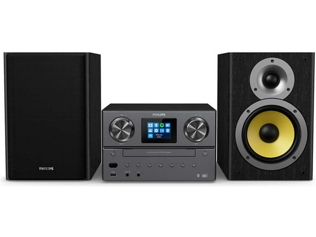 Fyll rommet med lydene du liker. Med Internett-radio, Spotify Connect, Bluetooth og en CD-spiller kan dette attraktive mikrosystemet spille av alt. Du kan også stille inn DAB+- eller FM-radio – alt i stor 100 W-lyd.