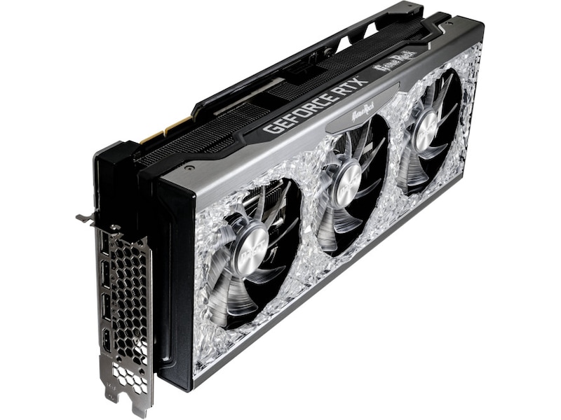 Palit GeForce RTX™ 3090 Ti GameRock er bygget for entusiastspillere og skapere som ønsker å ha den ultimate spillopplevelsen og den mest effektive multimedieytelsen. Modellen har ikke bare 90 % ARGB-belysningsområde, men presenterer også dyrisk termisk design med Triple A Die Casting Plate-sett og patenterte Double-U-varmerør for optimalisert kjøleløsning.