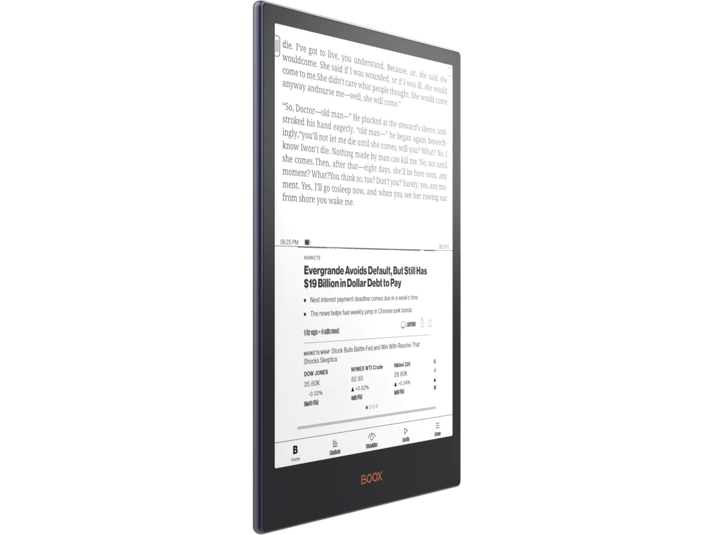 E Ink Mobius Carta 10.3"-skjermen har en lysere bakgrunn og høyere kontrast enn andre skjermen i denne klassen. Det lar deg lese i sterkt sollys, og skjermen har en høy oppdateringshastighet. Fraværet av flimrende frontlys og prinsippet om bildedannelse ved bruk av «elektronisk blekk» gjør det behagelig for øynene å lese. Multi-touch-skjermen gir enkel kontroll når du leser: Bla om med korte trykk, flytt sider, zoom med to fingre, lag notater i teksten og bruk tilleggsalternativer.