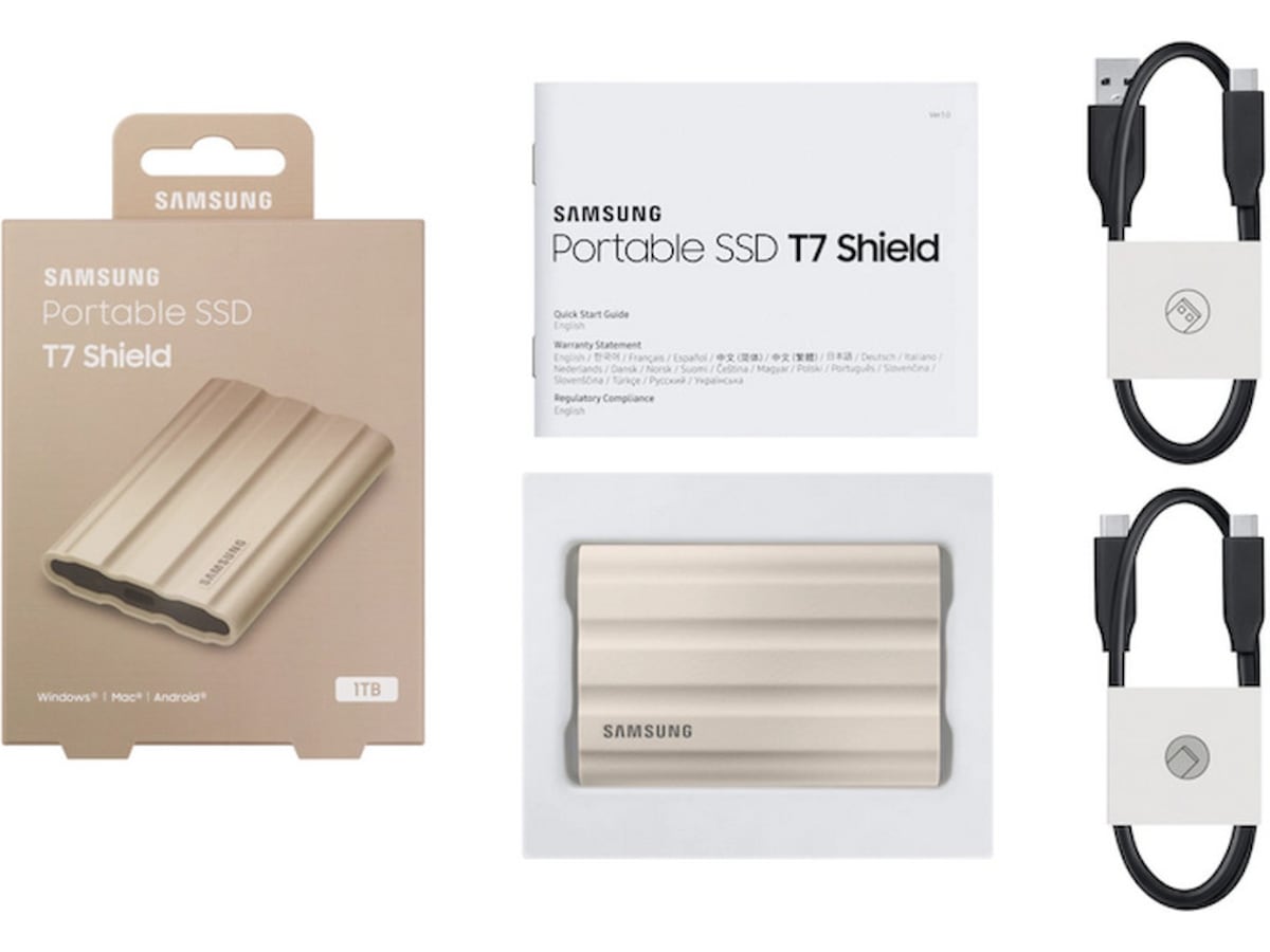 T7 Shield er kompatibel med PC, Mac, Android-enheter, spillkonsoller og mer*. Inkludert i esken er USB Type C-til-C- og Type C-til-A-kabler** for ekstra bekvemmelighet.
