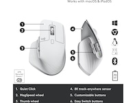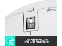 Ladbart batteri, Easy-Switch-teknologi, Tommelstøtte, Håndbevegelsesfunksjon, Tommelhjul, Tilpassbar DPI, Quiet Clicks-teknologi, Logitech Darkfield Laser Tracking, MagSpeed-hjul