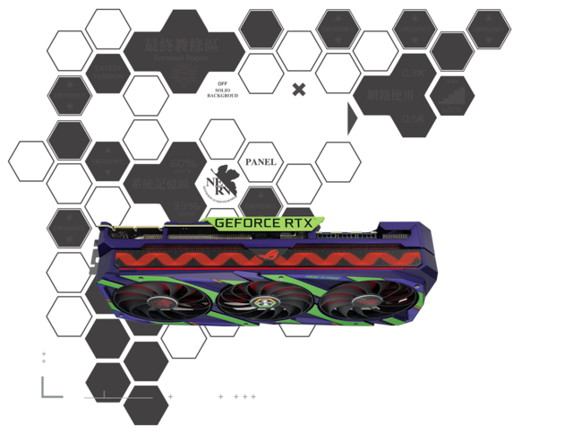 Året er 2022. Republic of Gamers lanserer nytt utstyr for EVANGELION-prosjektet. ROG Strix GeForce RTX ™ 3090 EVA Edition er utstyrt med flere ytelsesfremmende funksjoner. Estetiske detaljer fra EVA-01 dekker dekselet og bakplaten, og den ikoniske synkroniseringseffekten vises på ARGB-panelet på fronten.