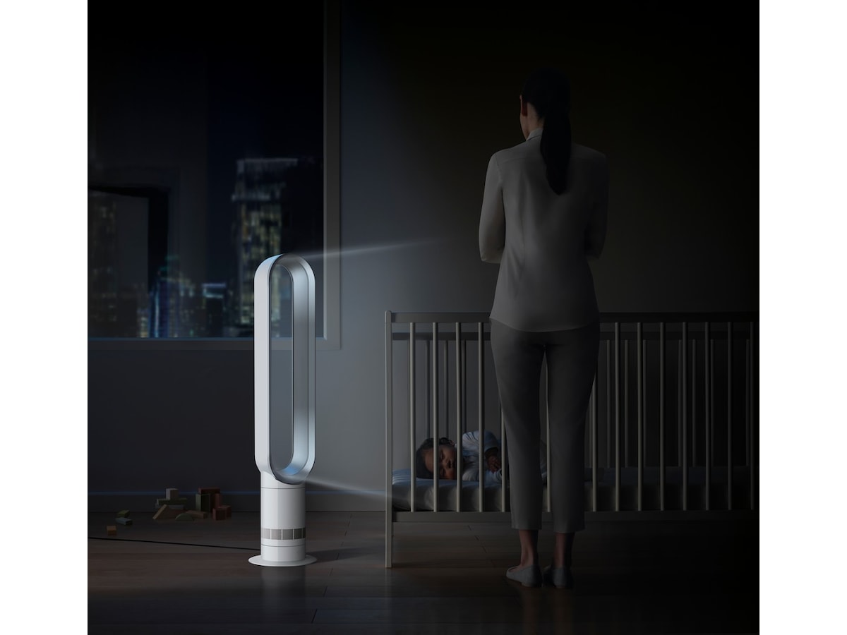 Det bladløse designet gjør den trygg og enkel å rengjøre. Den inkluderer også en kurvet og magnetisk fjernkontroll med ti presise luftstrøminnstillinger. Designet for gulv og større områder.