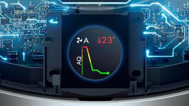 Integrerte sensorer analyserer luften din konstant, mens vår unike algoritme kryssjekker data hvert sekund. Den diagnostiserer på molekylært nivå og viser resultater i sanntid på LCD-skjermen.