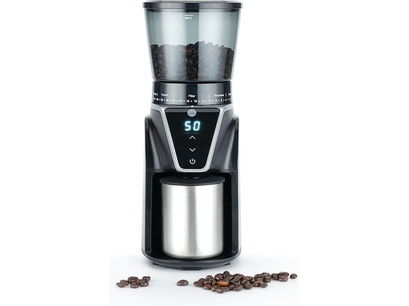 Kaffekvernen er utstyrt med digitalt display med timer og du kan enkelt justere ønsket maletid med pilene på kaffekvernen.