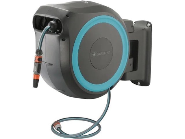 Trekk ut den 30 meter lange slangen til ønsket lengde under bruk. Når du stopper, kobles de ekstra korte låsepunktene inn for å låse slangen. Den praktiske veggbraketten gjør at slangetrommelen kan dreies 180° for å følge bevegelsene dine rundt i hagen. Dette gjør det lett å vanne i hagen, med maksimal bevegelsesfrihet og en slange som ikke floker seg.