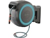 Trekk ut den 25 meter lange slangen til ønsket lengde under bruk. Når du stopper, kobles de ekstra korte låsepunktene inn for å låse slangen. Den praktiske veggbraketten gjør at slangetrommelen kan dreies 180° for å følge bevegelsene dine rundt i hagen. Dette gjør det lett å vanne i hagen, med maksimal bevegelsesfrihet og en slange som ikke floker seg.