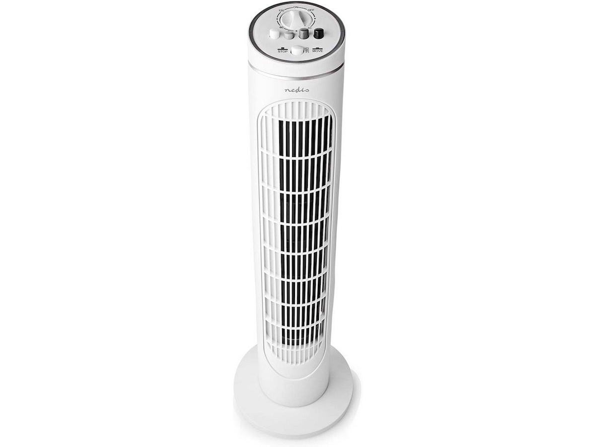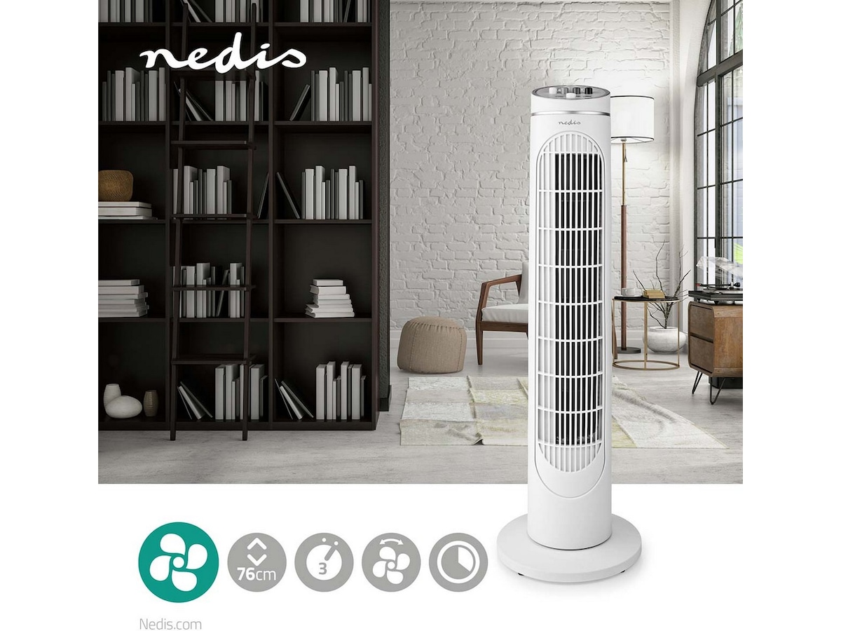 Denne tårnviften fra Nedis® har en kompakt utforming og trenger bare litt gulvplass slik at du kan glede deg over en forfriskende bris selv i små rom.