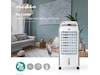 Luftkjøleren fungerer som følger: Den trekker inn tørr, varm luft som passerer gjennom en fuktet pute. Denne puten absorberer varmen, og fuktigheten i puten fordamper og kjøler ned luften noen få grader slik at du kan nyte en oppkvikkende og forfriskende bris. Sammenlign den med å tilbringe en varm sommerdag på vannet: Selv om temperaturen er høy, føles det likevel behagelig kjølig.