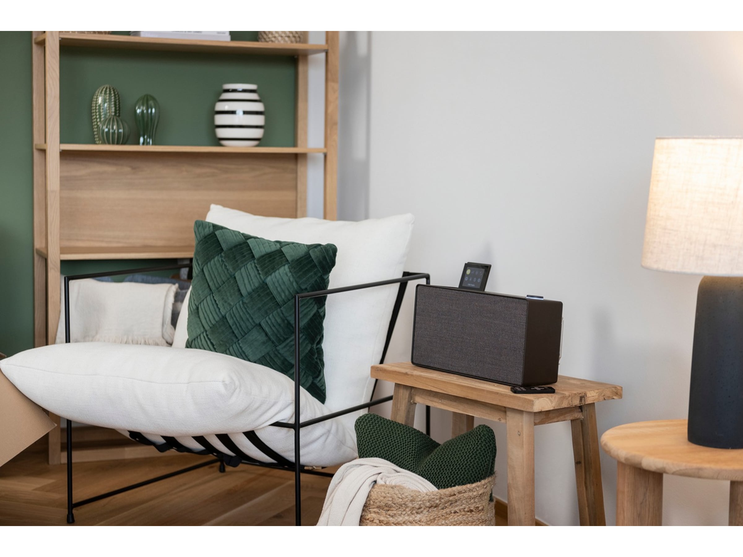 Et flott alternativ til et klassisk Hi-Fi-anlegg som tilbyr lydinnhold fra Spotify Connect, internasjonale radiostasjoner, DAB+ eller din private CD-samling.