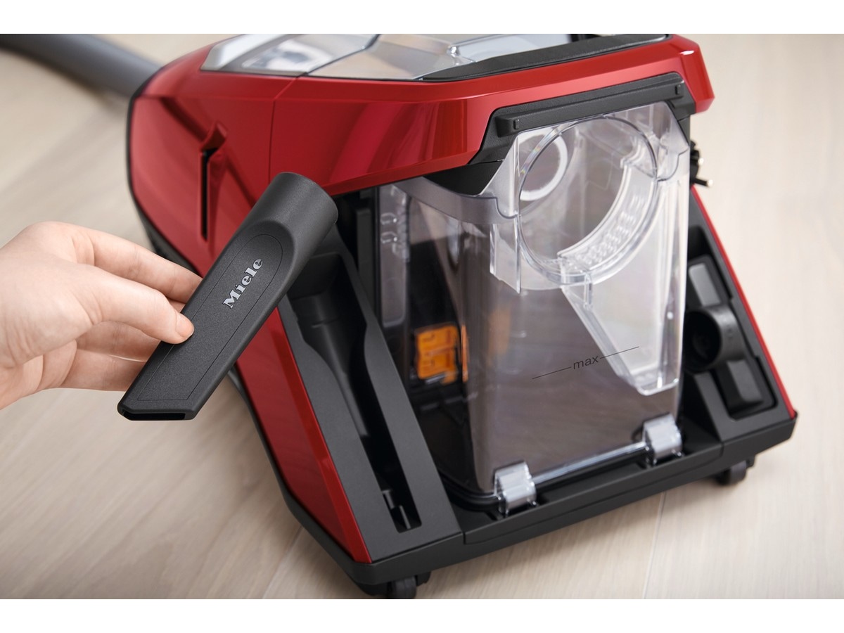 Standardutstyr for gulvstøvsugeren Miele Blizzard er tre sugemunnstykker av høy kavlitet: møbelmunnstykke og fugemunnstykke er integrert i støvsugeren. En sugebørste er integrert i Eco Comfort-håndtaket eller følger med separat.