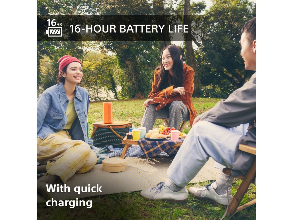 Med utrolige 16 timers batteritid og hurtiglading (10 minutter lading gir 70 minutter avspilling), kan du holde feststemningen i gang hele dagen og natten.
