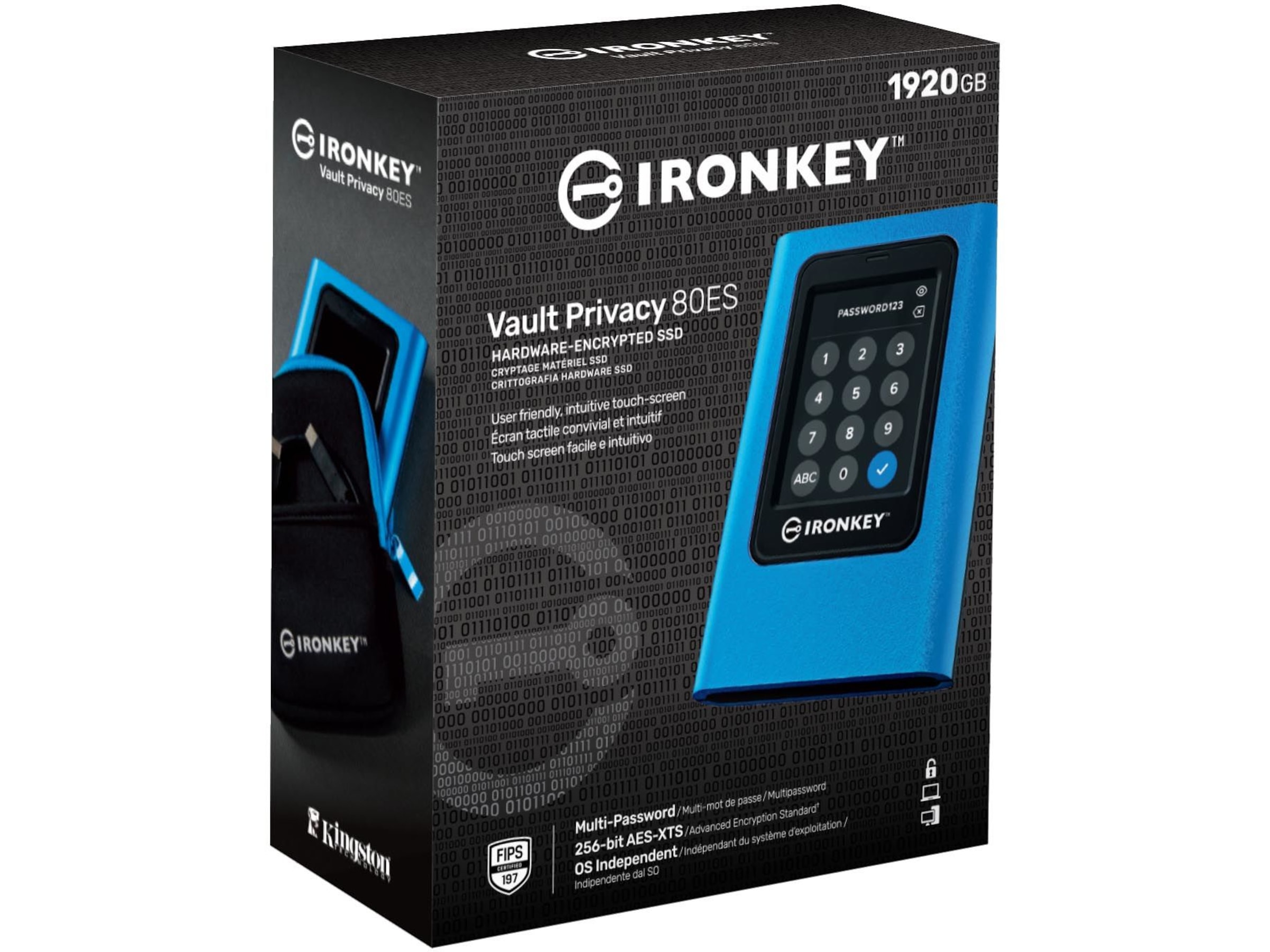 Kingston IronKey™ Vault Privacy 80 External SSD er Kingstons første innovative operativsystemuavhengige, maskinvarekrypterte eksterne SSD med berøringsskjerm for databeskyttelse. VP80ES beskytter mot angrep med rå kraft og BadUSB med digitalt signert fastvare. Beskyttelse mot angrep med rå kraft kryptosletter som standard harddisken hvis administrator- og brukerpassordet blir skrevet inn feil 15 ganger1 på rad. Disken er FIPS 197-sertifisert med 256-bits XTS-AES-kryptering ved hjelp av en Common Criteria EAL5+ (CC EAL5+)-sertifisert sikker mikroprosessor, og er TAA-kompatibel.