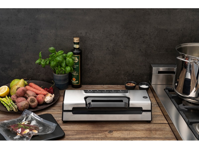Puls-funksjonen er for eksempel svært godt egnet til å pakke ømtålige matvarer som frukt, bær og sopp, fordi man unngår å mose råvarene. Med puls-knappen er det også lett å pakke væskefylt mat, fordi den skaper det akkurat det vakuumet du behøver for deretter å forsegle posen. Dermed passer denne vakuumpakkeren for alt fra hobbydyrkere, jegere, soppsankere og bærplukkere. Du kan trygt ta vare på alt fra hagen og skogen, og nyte sommerens og høstens smaker året rundt.
