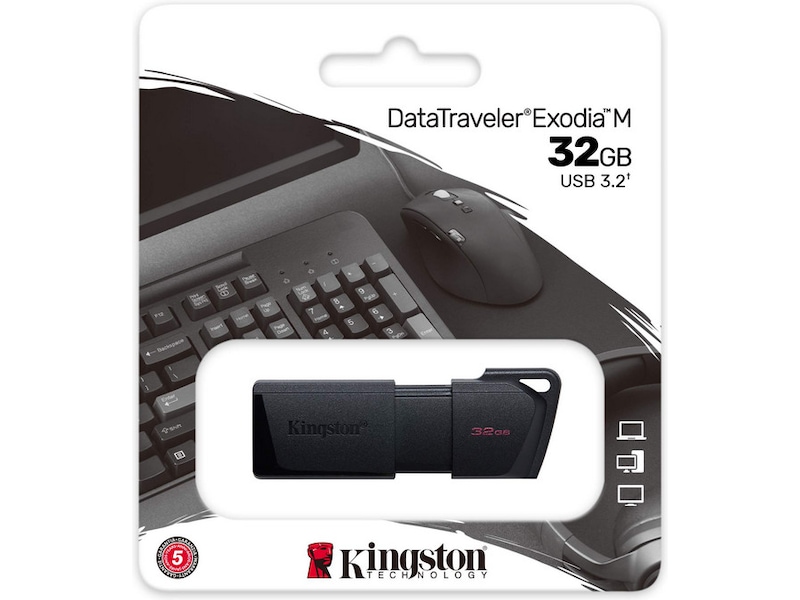 Kingston DataTraveler Exodia M har USB 3.2 Gen 1-ytelse for enkel tilgang til laptoper, stasjonære PC-er, skjermer og andre digitale enheter. DT Exodia M muliggjør raske overføringer og praktisk lagring av dokumenter, musikk, videoer og mer. Den er tilgjengelig i flere stilige farger som tilsvarer kapasiteter på opptil 256 GB. Den praktiske designen gjør den til en ideell lagringsløsning på farten enten på jobb, hjemme eller på skolen. DT Exodia M støttes av en fem års garanti, gratis teknisk support og en legendarisk Kingston®-pålitelighet.