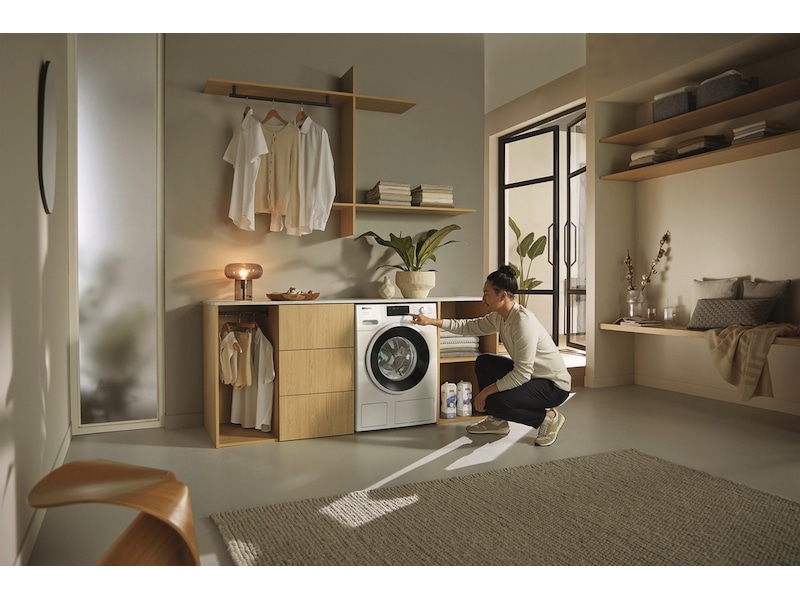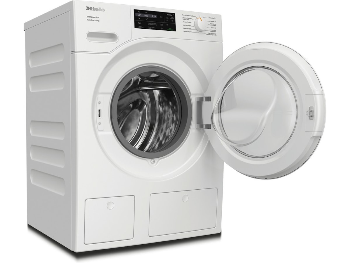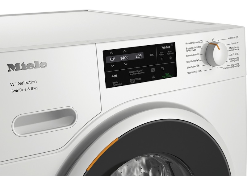 W1 Vaskemaskin frontmater: Med TwinDos, CapDosing og Miele@home for smart tøypleie.