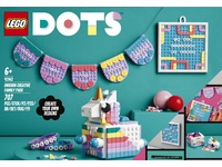 Skap noe vakkert alene eller sammen med familie eller venner med settet Kreativ familiepakke med enhjørning! Åpne LEGO® DOTS settet for å utforske de mange forskjellige tingene du kan lage, bruke, dele og vise fram, inkludert to smale armbånd, en skrivemateriellholder formet som en enhjørning, en liten meldingstavle og dekorasjoner med snor samt masse fargerike fliser og tre pakker med bokstavfliser. La oss feire gøyale leker og #youDOTyou!