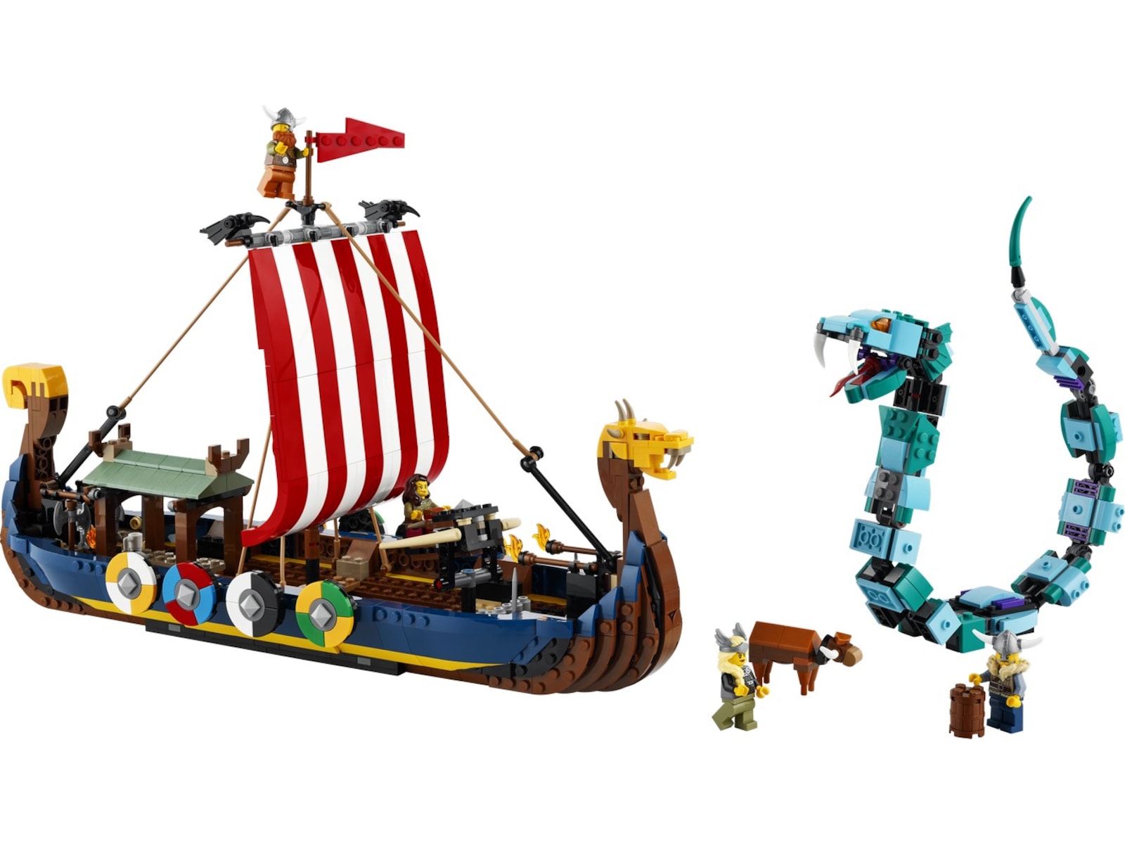 - Tre vikingleker i ett sett – barn vil elske settet LEGO® Creator 3-i-1 Vikingskip og midgardsormen (31132) som inneholder et vikingskip, et vikinghus og en modell av Fenrisulven