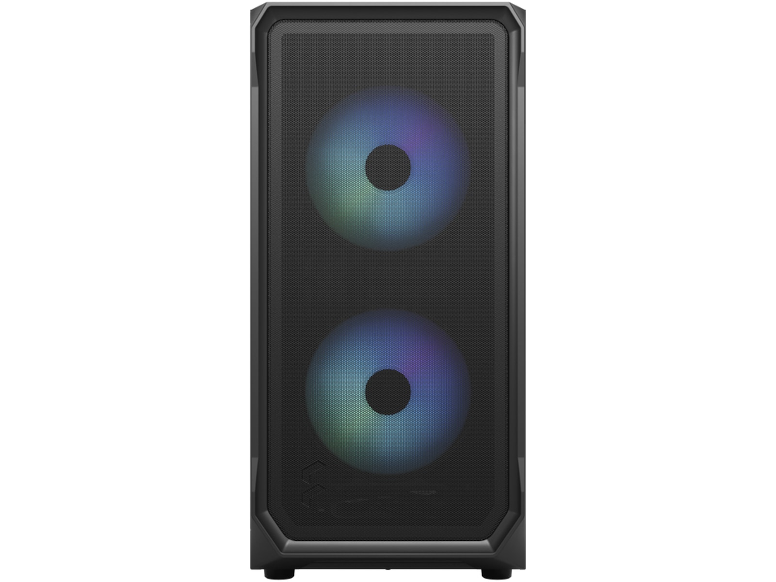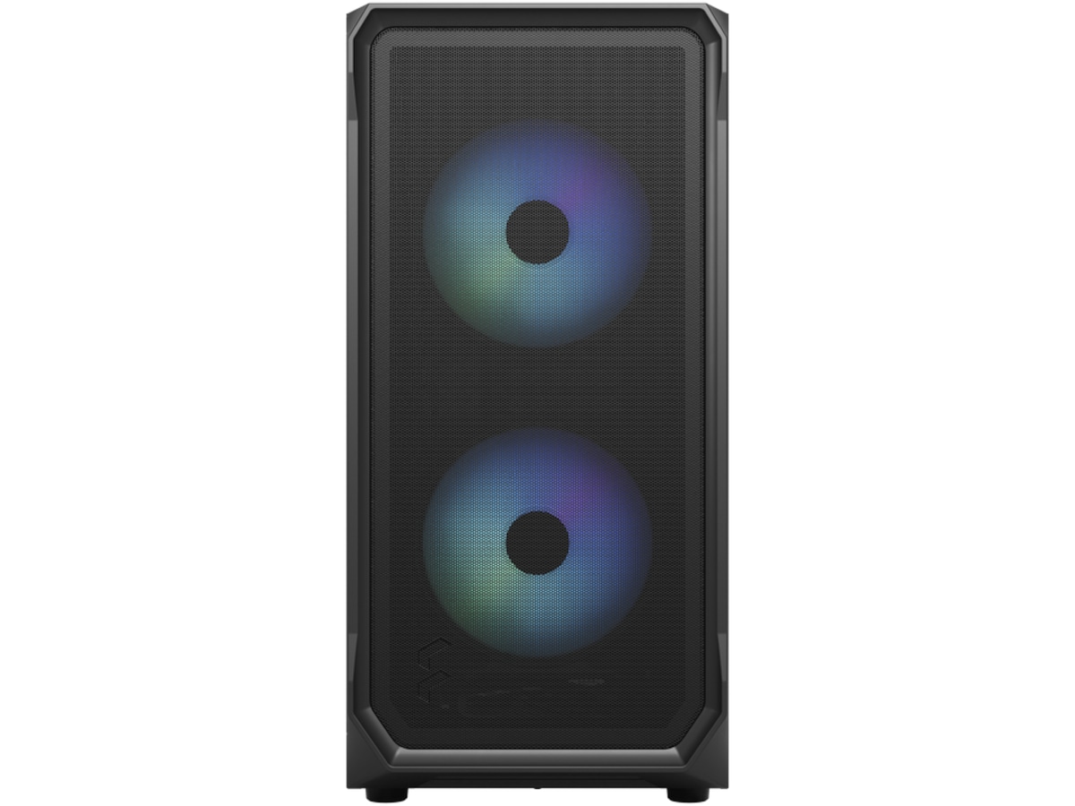 • I/O-panelet på fronten har to 3.0 USB 5 Gb/s-porter, mikrofon- og hodetelefonkontakter, en nyutviklet adresserbar RGB-kontroller og RGB LED-lys (Focus 2 RGB)