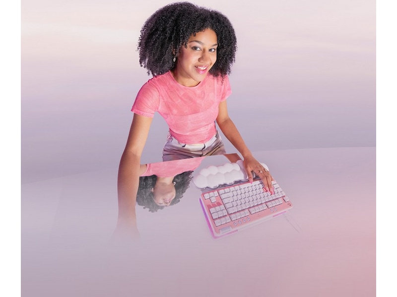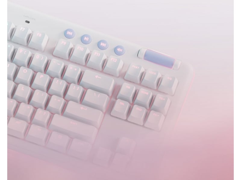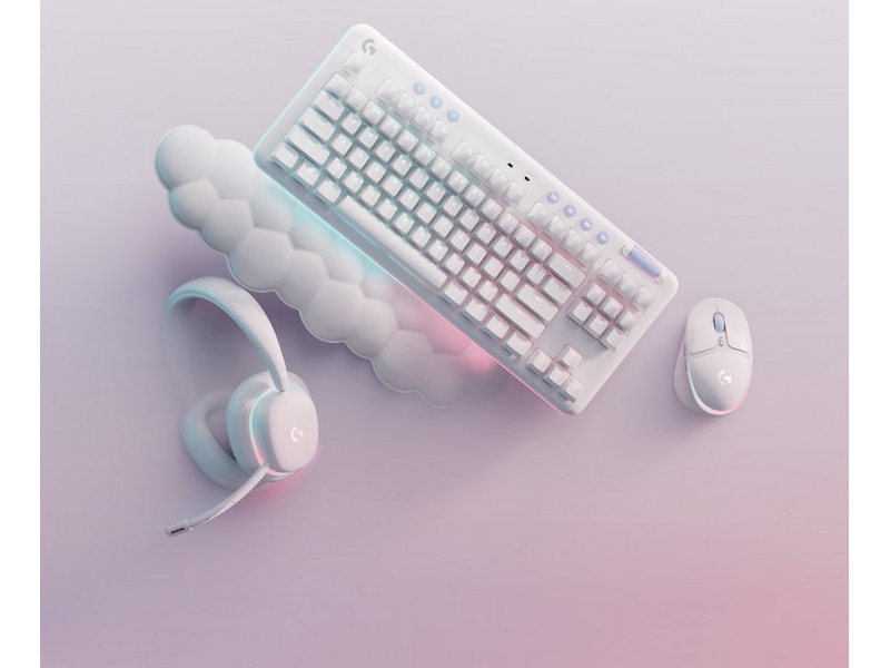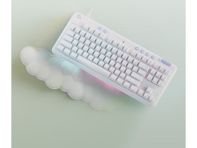 G713 Gaming Keyboard tilhører Aurora Collection og er et kompakt, komfortabelt tastatur som leverer lave og høye toner av høy kvalitet slik at du kan uttrykke deg og spille på din måte. Flyt avsted med den drømmende hvite designen og dunmyke håndleddsstøtten. En kompakt størrelse uten numerisk tastatur og justerbar høyde som gir den gode spillopplevelsen dagen lang.