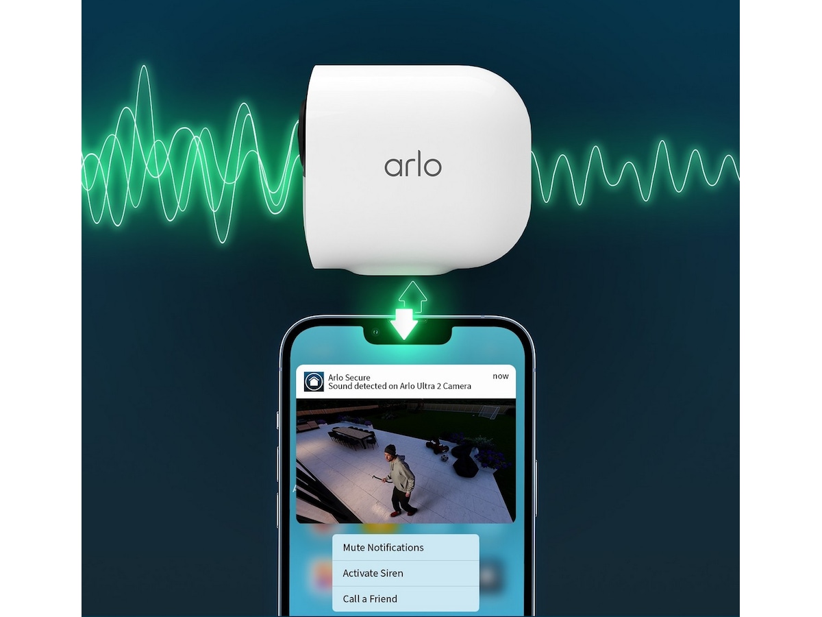 Få umiddelbare bevegelsessensor-varsler og live stream video, eller velg et Arlo Secure-abonnement (selges separat) for å lagre videoklipp i skyen og se tilbake på dem når som helst i appen. Med spesialisert lyddempende lydteknologi kan du høre og snakke med de besøkende som om du var til stede, og se i levende farger selv i det mørkeste nattemørket.