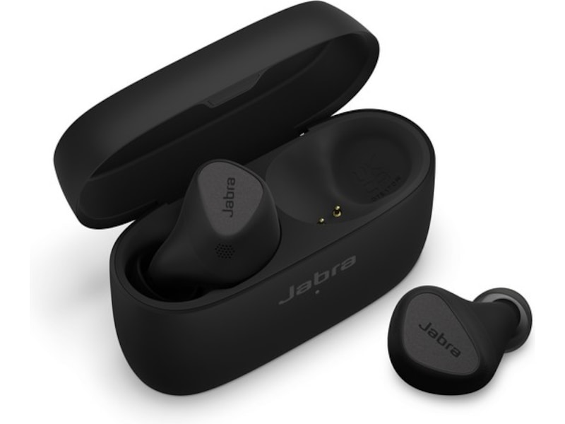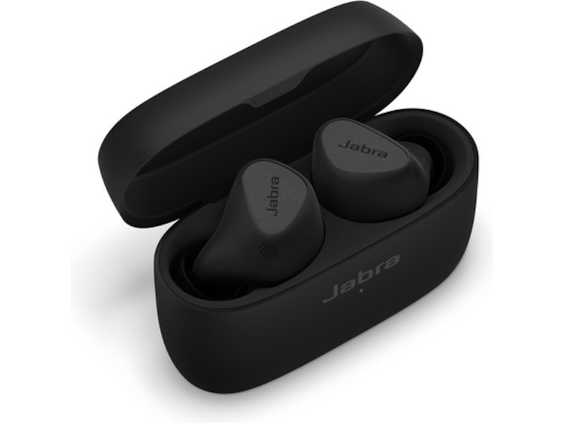 Jabra Elite 5 ekte trådløse ørepropper med hybrid aktiv støydemping (ANC), anropsteknologi med seks mikrofoner og 6 mm høyttalere.