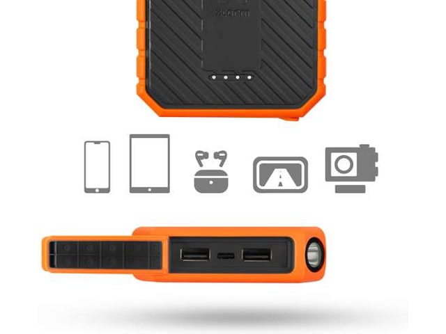 Rugged Power Bank 10.000 er den ultimate overlevelsesdingen som holder deg i gang under utendørseventyrene dine. Den lar deg raskt hurtiglade mobilenhetene dine, uansett hvor du er.