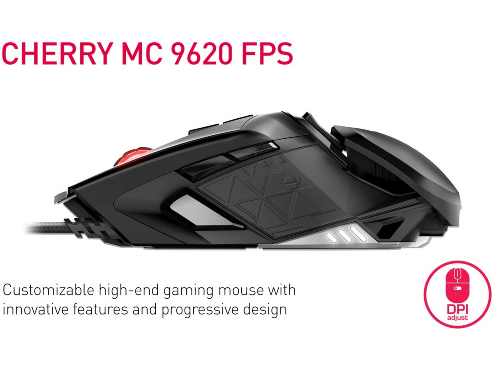 Gjør deg klar til å vinne med CHERRY MC 9620 FPS Gaming-musen. Den tilpasser seg til ditt presisjonsnivå, hastighet og dine ergonomiske krav. CHERRY Utility-programvaren kan lastes ned og lar deg stille inn oppløsningen til opptil 12 000 dpi, regulere hastigheten opptil 250 ips / 50 g eller tilordne musefunksjoner og lyse den opp etter dine ønsker. RGB-belysningen med logoprojeksjon med et komplett fargespektrum på 16,8 millioner farger er også enkelt å stille inn med dette. Dpi-knappen lyser etter dpi-innstillingen, for enkel orientering. Den samtidige analoge og digitale kontrollen regulerer progressivt funksjonene på samme måte som en kontroller. Tre vekter kan settes inn, og håndleddstøtten kan forlenges i fem trinn, noe som betyr at den kan tilpasses til dine ergonomiske krav, og den kan beveges jevnt på den ekstra store glideflaten. Musen passer perfekt i hånden din takket være materialer og overflater av høy kvalitet som er laget i en moderne produksjonsprosess, og den garanterer mange timers spillglede. Skapt for vinnere!
