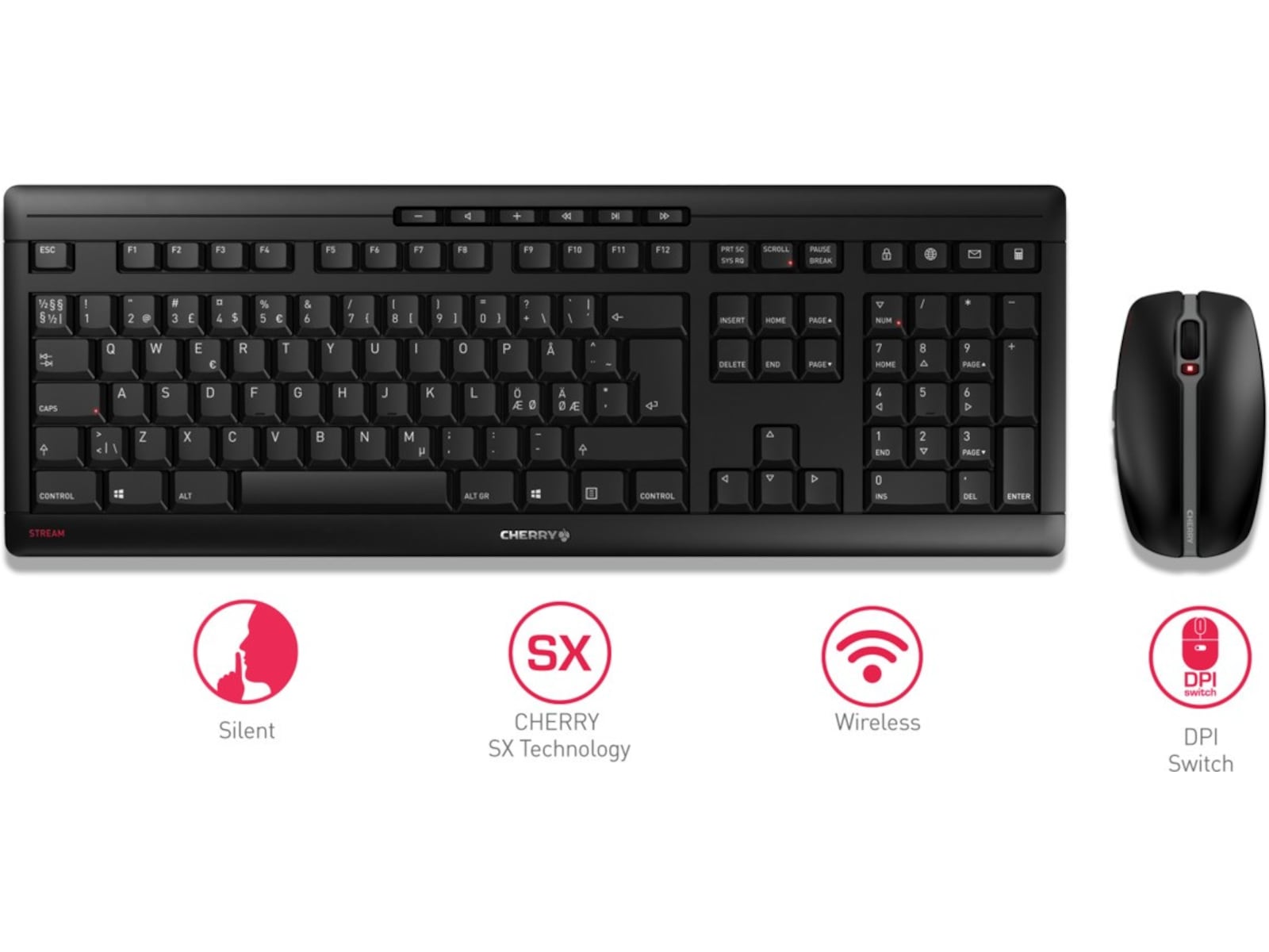 Cherry Stream Desktop Trådløs Tastatur + Mus (sort)