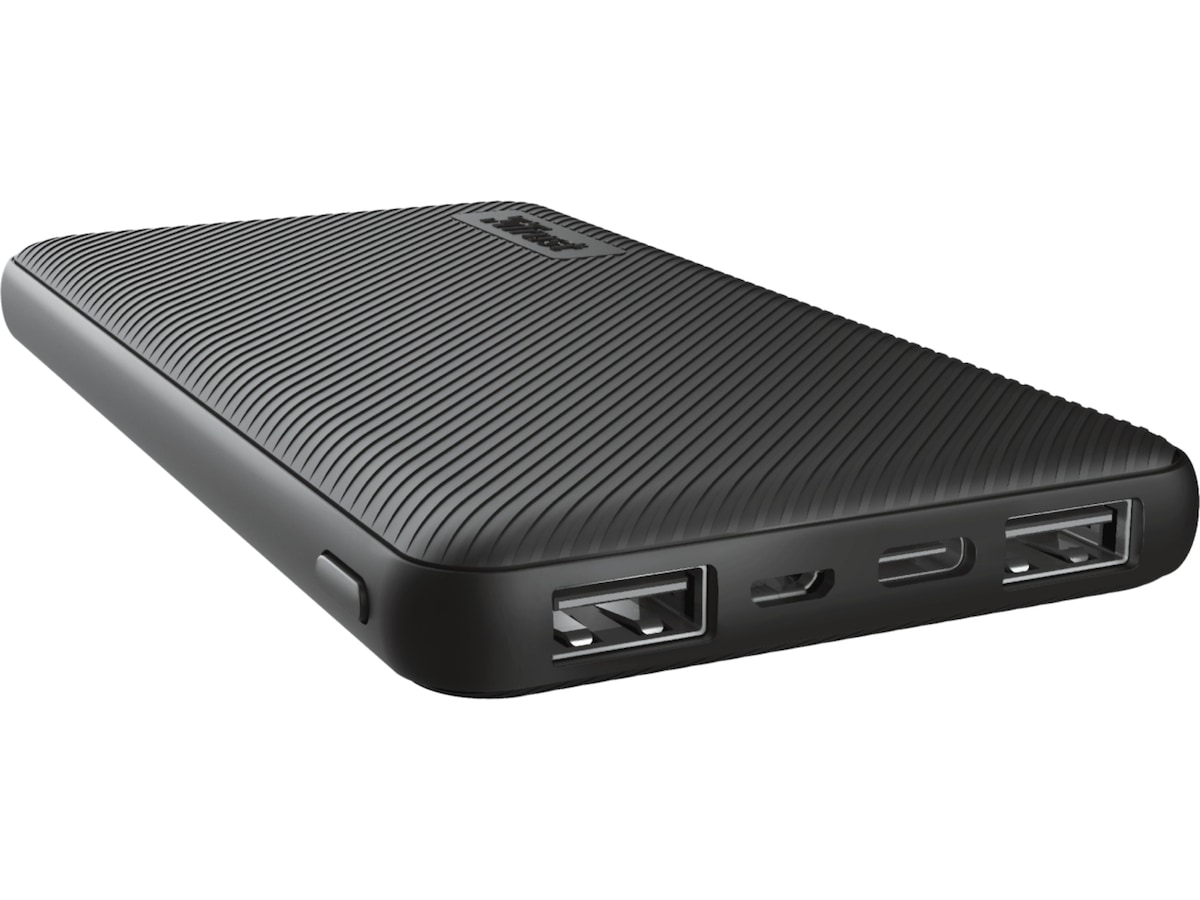 Nødladeren Trust Primo på 10 000 mAh er rask og smart: Leverer automatisk maksimal strøm til enhetene dine**. Du kan også raskt lade opp nødladeren med den medfølgende micro-USB-kabelen eller via USB-C-porten. Den smarte LED-nivåindikatoren på nødladeren gir deg beskjed når det er på tide å lade opp