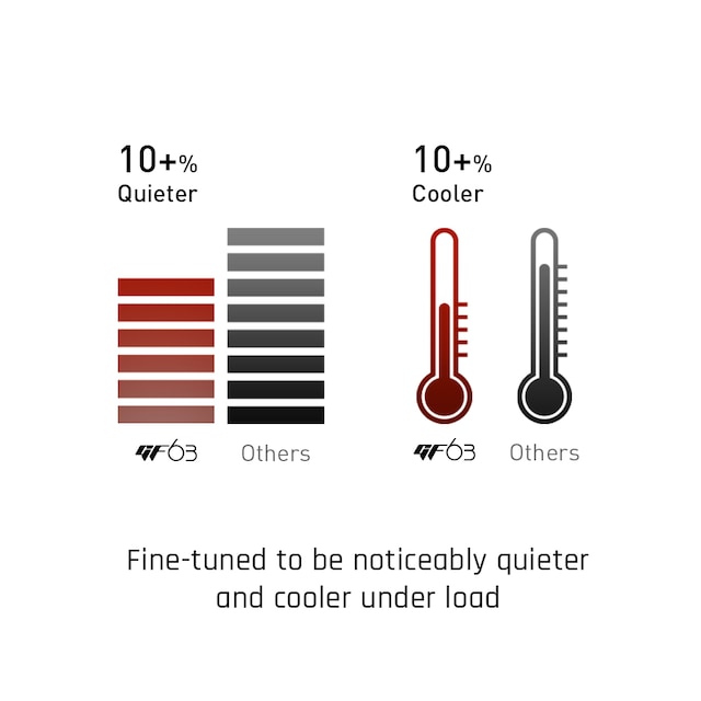 Finjustert for å være merkbart roligere og kjøligere under høye belastninger, slik at den passer lett inn i alle slags miljøer.