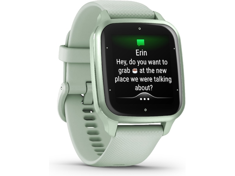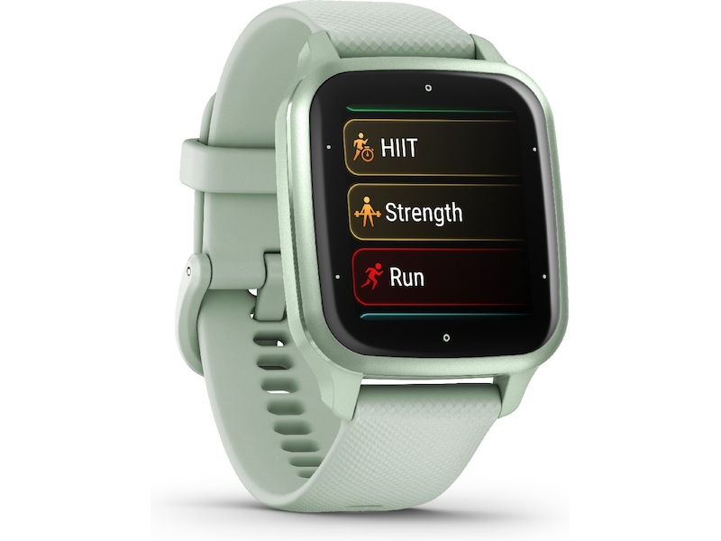 Se alt tydelig med stor, lettlest tekst på det lyse AMOLED-displayet med forbedret grafikk og en alltid på-modus, perfekt for å ta et raskt blikk på klokken. Skjermstørrelsen er 17 % større enn den originale Venu Sq-serien.