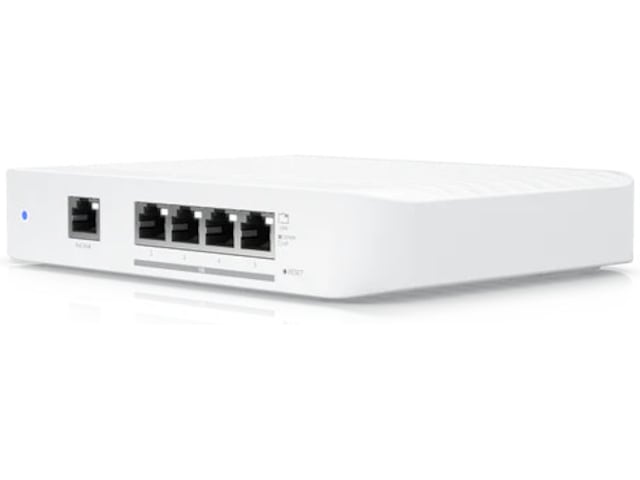 (1) GbE, PoE RJ45-input (4) 10GbE RJ45-porter